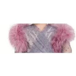 - 4pieces Include a pink feather boa, velvet belt, with a pair of gorgeous lilac shoes with satin ties.