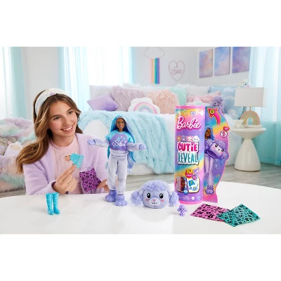 - With 10 surprises in 1 package, Barbie Cutie Reveal Cozy Cute Tees Series dolls deliver the cutest unboxing experience with plush animal friends, fashions and transforming fun! Which doll will you reveal
