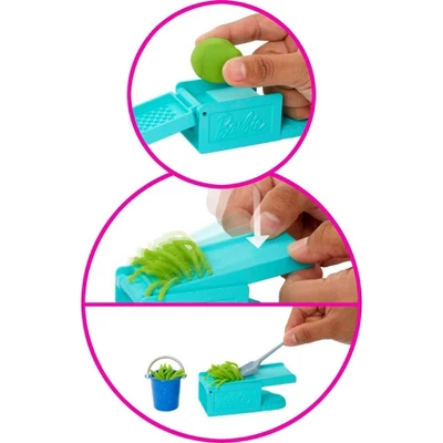 Explore a world of farm fun with the Barbie Hatch & Gather Egg Farm playset. Barbie doll (brunette/11.5 in) comes in a petite shape and wears an adorable chicken-themed dress and blue boots. The playset has a realistic egg hatching feature where kids use dough to create eggs in the mold and “hatch” baby chicks! The fun really starts as kids help the hens “lay eggs” that roll down the chute and collect into the carton. They can also “grow” grass with the green dough for food to feed the calf and bunny figures. Storytelling piece count includes Barbie doll, hatching stand, 2 dough colors, grass mold, shovel, bucket, basket, apple treats, feeder, baby calf, bunny, 2 hens and 6 chicks. Doll cannot stand alone. Colors and decorations may vary. For ages 4 years old and up.