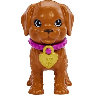 - Barbie Pup Adoption playset encourages nurturing play with Barbie doll, 2 puppies, accessories and color-change transformation
