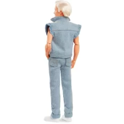 - Ken doll’s all-denim look features an open vest and matching light wash jeans with premium details like contrast stitching, buttons and pockets throughout.