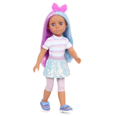 - 14-inch Doll: Ciara has pierced ears and a whole lot of style! She has purple eyes and shiny hair that is pink on one side and blue on the other.