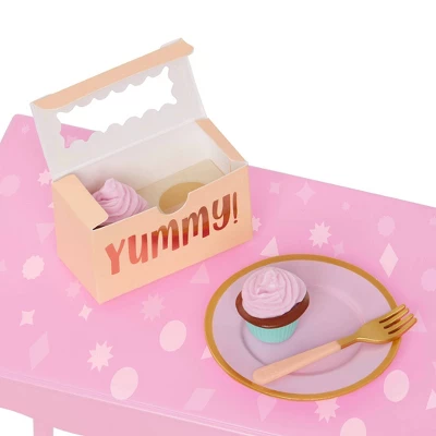 - Includes: Poseable doll, table and chairs furniture set, birthday cake with removable slice, 3 candles, cupcake box, heart-shaped balloon, and party accessories; compatible with most 14-inch dolls, outfits, and accessories.