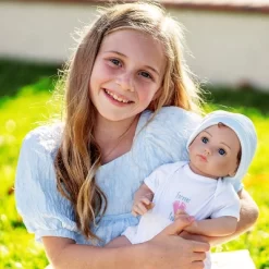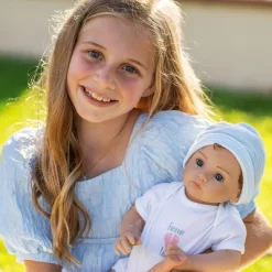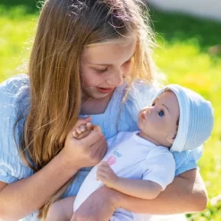 Trust is part of our Forever Yours Collection, and just like every child, he yearns for a warm parent embrace. This 18-inch baby boy is sweetly swaddled in his blue receiving blanket and arrives in his crib box wearing a Paradise Galleries Doll Diaper underneath his white jersey knit onesie, a knit head cap in stripes to keep him warm, and a hospital bracelet on his wrist. Forever Yours Trust doesnt go anywhere without his magnetic pacifier which soothes him to sleep after a long day of cuddles and play with you.