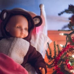 An adorable and cuddly Bear Sleeper perfect for 15 inch Bitty Baby or Bitty Twins! Soft and cuddly plush velour brown sleeper features a lined hood with ears, white accent bib and embroidered “paws”. Superbly constructed on a soft fuzzy material to cuddle up with. Exclusively made by The Queen’s Treasures, offering the highest quality 18 inch Doll Furniture, 18 inch Doll Clothes, 18 inch Doll Shoes & 18 inch Doll Accessories! Safety Tested!