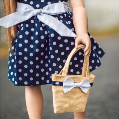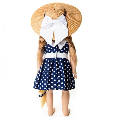 Clean, classic look takes 18″ dolls from church pew to picnic. Outfit includes dress, matching straw handbag and hat, sized right for an 18 inch doll. Bertha-collar dress has a bow accent. Accessories sport coordinating polka-dot trim. Handbag has plenty of room for 18″ doll essentials. Safety tested and perfectly sized for 18 inch dolls. Recommended for children 6+. Exclusively made by The Queen’s Treasures, offering the highest quality 18 inch Doll Furniture, 18 inch Doll Clothes, 18 inch Doll Shoes & 18 inch Doll Accessories! Exclusively made by The Queen’s Treasures, offering the highest quality 18 inch Doll Furniture, 18 inch Doll Clothes, 18 inch Doll Shoes & 18 inch Doll Accessories!