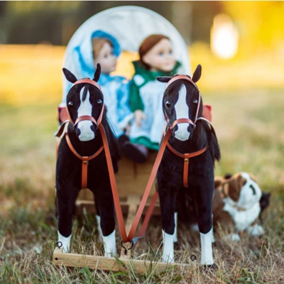 Officially licensed Little House on the Prairie Pony takes its inspiration from the beloved Laura Ingalls Wilder stories. Modelled after Pet and Patty, the Western Mustangs that Pa said were “strong as mules and gentle as kittens.” Compatible for use with 18 inch American Girl dolls.. Realistic features include a brush-able mane and tail (gently please), expressive eyes and sure-footed hooves. Harness and hitch to the 18 inch Doll Prairie Wagon for a trip to the frontiers of imagination! Exclusively made by The Queen’s Treasures, offering the highest quality 18 inch Doll Furniture, 18 inch Doll Clothes, 18 inch Doll Shoes & 18 inch Doll Accessories! Safety Tested!